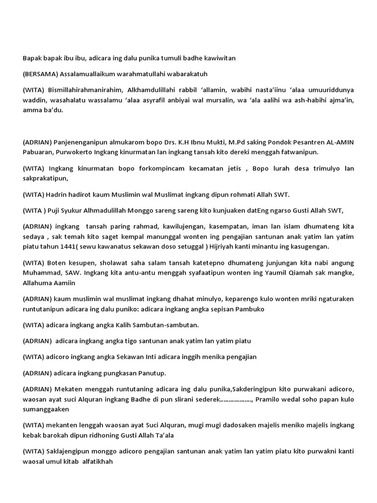 Teks pembawa acara santunan anak yatim bahasa jawa.